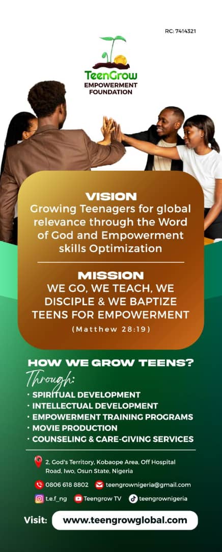 In a World where immorality and other vices are on the increase, where corruption is the new normal, we at Teen Grow Global are committed to building and educating the mind of the young ones for global relevance. A transformed Mind will transform the World.